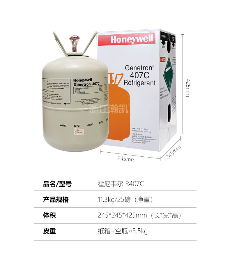 霍尼韋爾R407C制冷劑,別名R-407C,商品為Genetron 407C、Honeywell R-407C等。由于霍尼韋爾R-407C屬于HFC型非共沸環(huán)保制冷劑(完全不含破壞臭氧層的CFC、HCFC),得到目前絕大多數(shù)國家的認(rèn)可并推薦的中高溫環(huán)保制冷劑,廣泛用于新冷凍設(shè)備上的初裝和維修過程中的再添加。符合美國環(huán)保組織EPA、SNAP和UL的標(biāo)準(zhǔn),符合美國采暖、制冷空調(diào)工程師協(xié)會(ASHRAE)的A1安全等級類別(對人身體無害)。