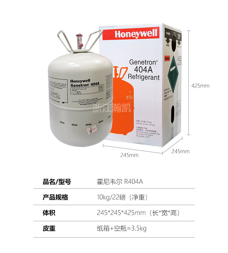 霍尼韋爾R-404A制冷劑,別名R404A,商品名稱Genetron® 404A冷媒。由于霍尼韋爾R-404A冷媒屬于HFC型非共沸環(huán)保制冷劑(完全不含破壞臭氧層的CFC、HCFC),得到目前絕大多數(shù)國家的認(rèn)可并推薦的低溫環(huán)保制冷劑,廣泛用于新冷凍設(shè)備上的初裝和維修過程中的再添加。
