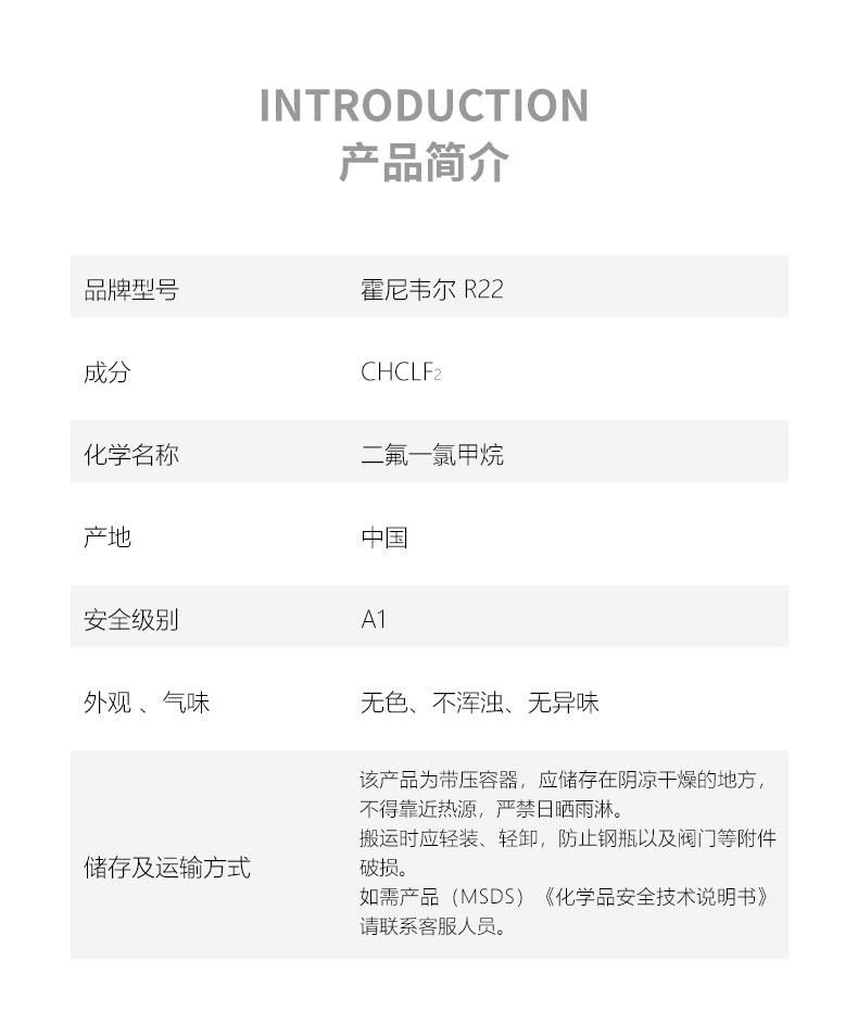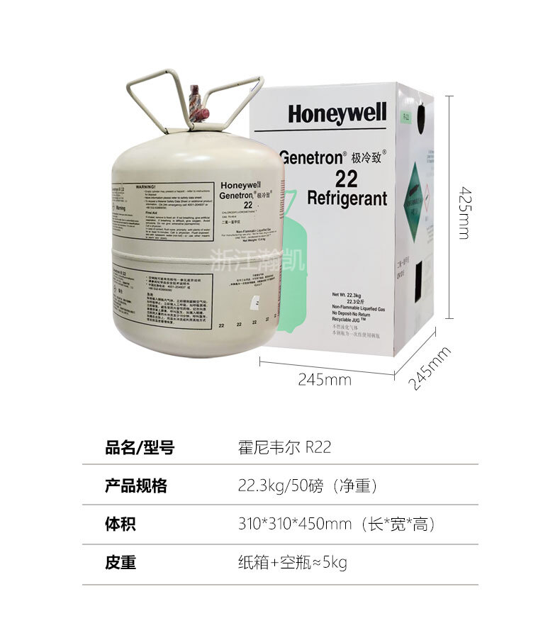 霍尼韋爾R-22制冷劑,別名R22、氟利昂22、F-22、HCFC-22、二氟一氯甲烷,商品名稱Genetron 22等,中文名稱二氟一氯甲烷,英文名稱Chlorodifuoromethane,化學式CHClF2。由于霍尼韋爾R-22制冷劑屬于HCFC類物質(第二批受限的ODS物質Class II Ozone-depleting Substances)——對臭氧層有破壞、并且存在溫室效應,因此在發(fā)達國家(歐盟、日本、美國),已經停止了在新空調、制冷設備上的初裝;中國目前對于R22制冷劑的生產、初裝、以及再添加基本沒有限制。